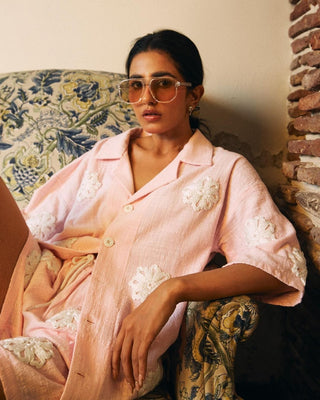 HAND EMBROIDERED PINK BUTTON DOWN