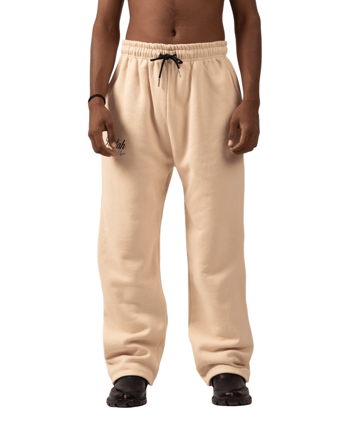 Made from premium heavyweight cotton fleece, these sweatpants are designed to offer warmth, durability, and style. The beige hue adds a refined touch, while intricate details like the bold puff-printed "Rastah" logo on the front right pocket and the elegant Urdu "Rastah" logo on the back hemline elevate the design. The addition of a back pocket ensures practicality without compromising on aesthetics.