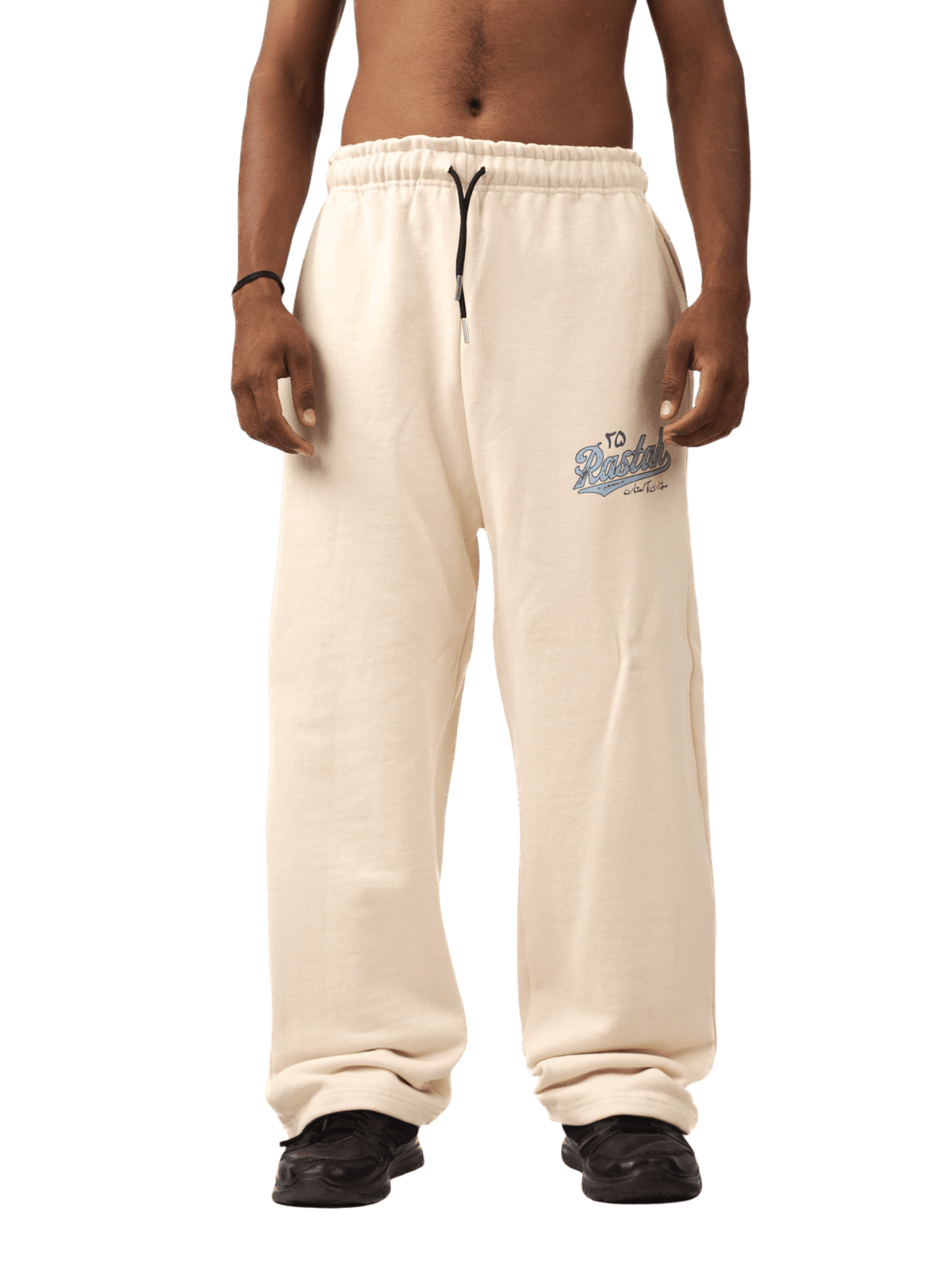 Crafted for everyday comfort and cultural pride, the Beige Made in Pakistan Fleece Trousers are cut from 100% fleece for unmatched softness and warmth. Featuring a relaxed, wide-leg silhouette and an elasticated waistband with drawstrings, these trousers are detailed with screen-printed “To Rastah” and Urdu script branding on the thigh — a nod to heritage and contemporary design. Made in Pakistan with purpose.
