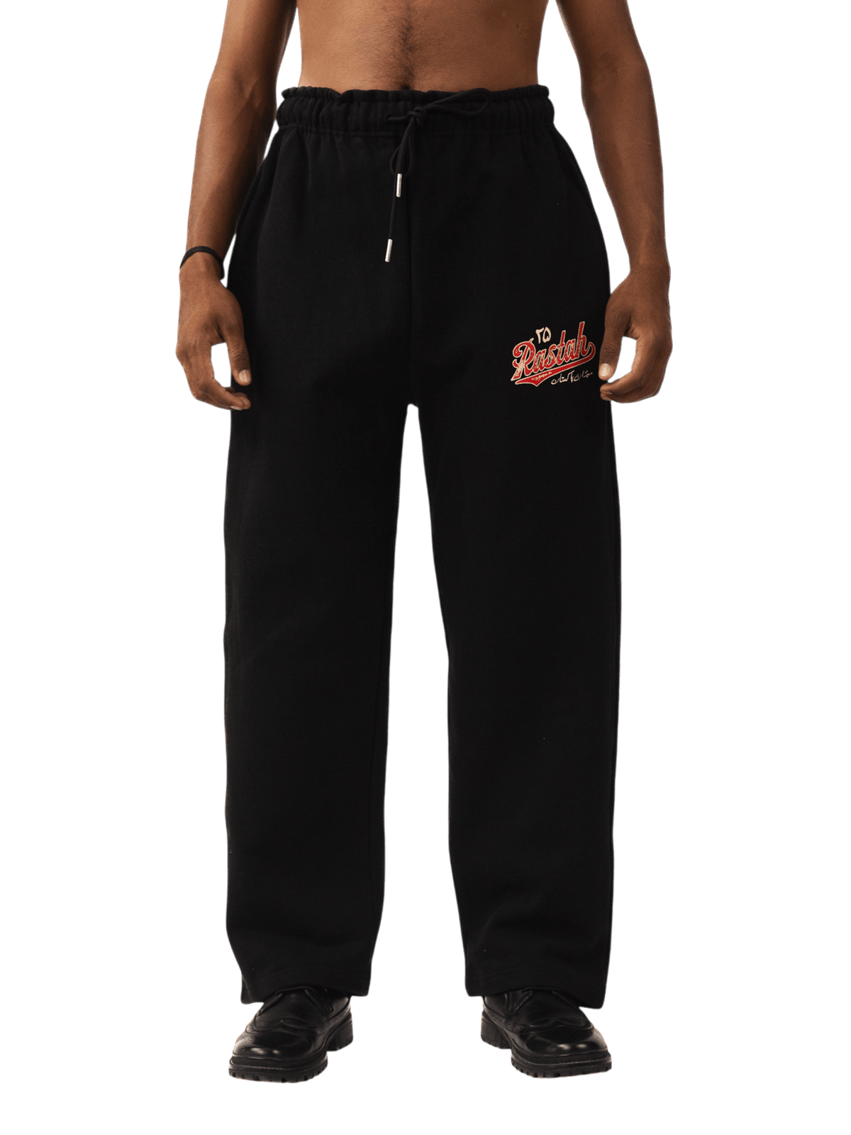 Crafted for everyday comfort and cultural pride, the Black Made in Pakistan Fleece Trousers are cut from 100% fleece for unmatched softness and warmth. Featuring a relaxed, wide-leg silhouette and an elasticated waistband with drawstrings, these trousers are detailed with screen-printed “To Rastah” and Urdu script branding on the thigh — a nod to heritage and contemporary design. Made in Pakistan with purpose.