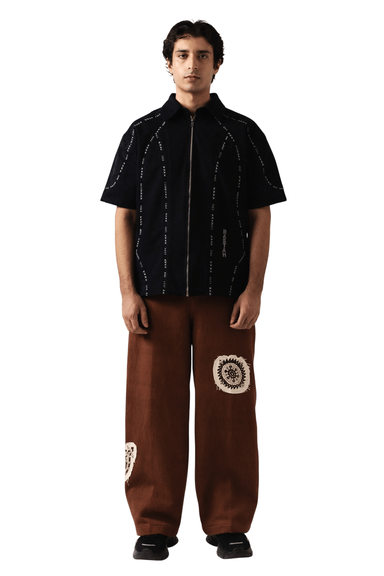 Brown Block Print Denim Pants