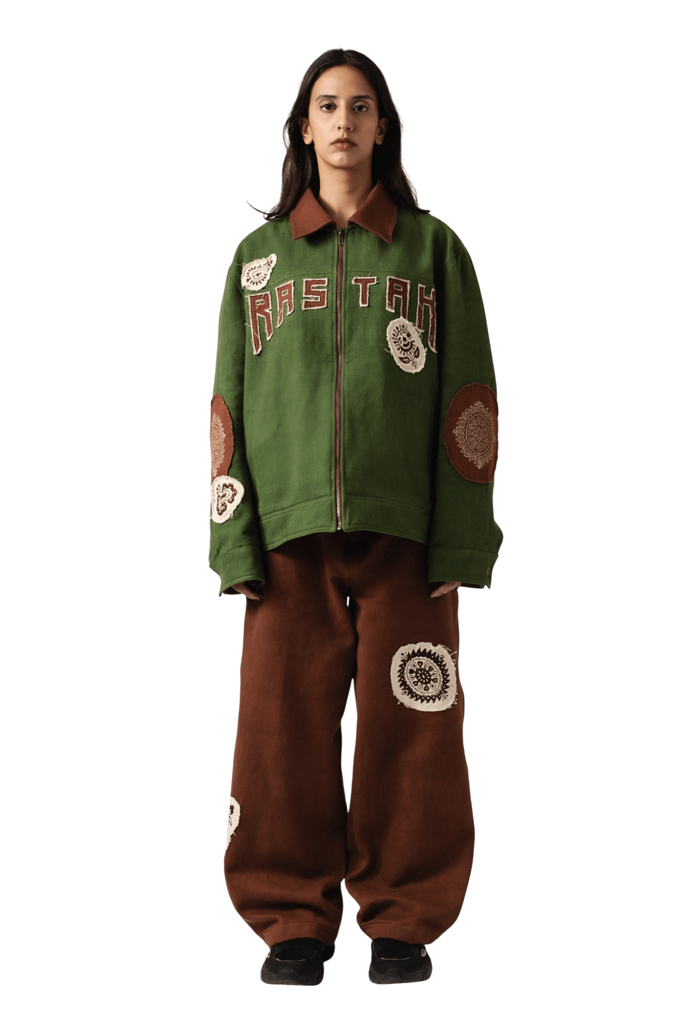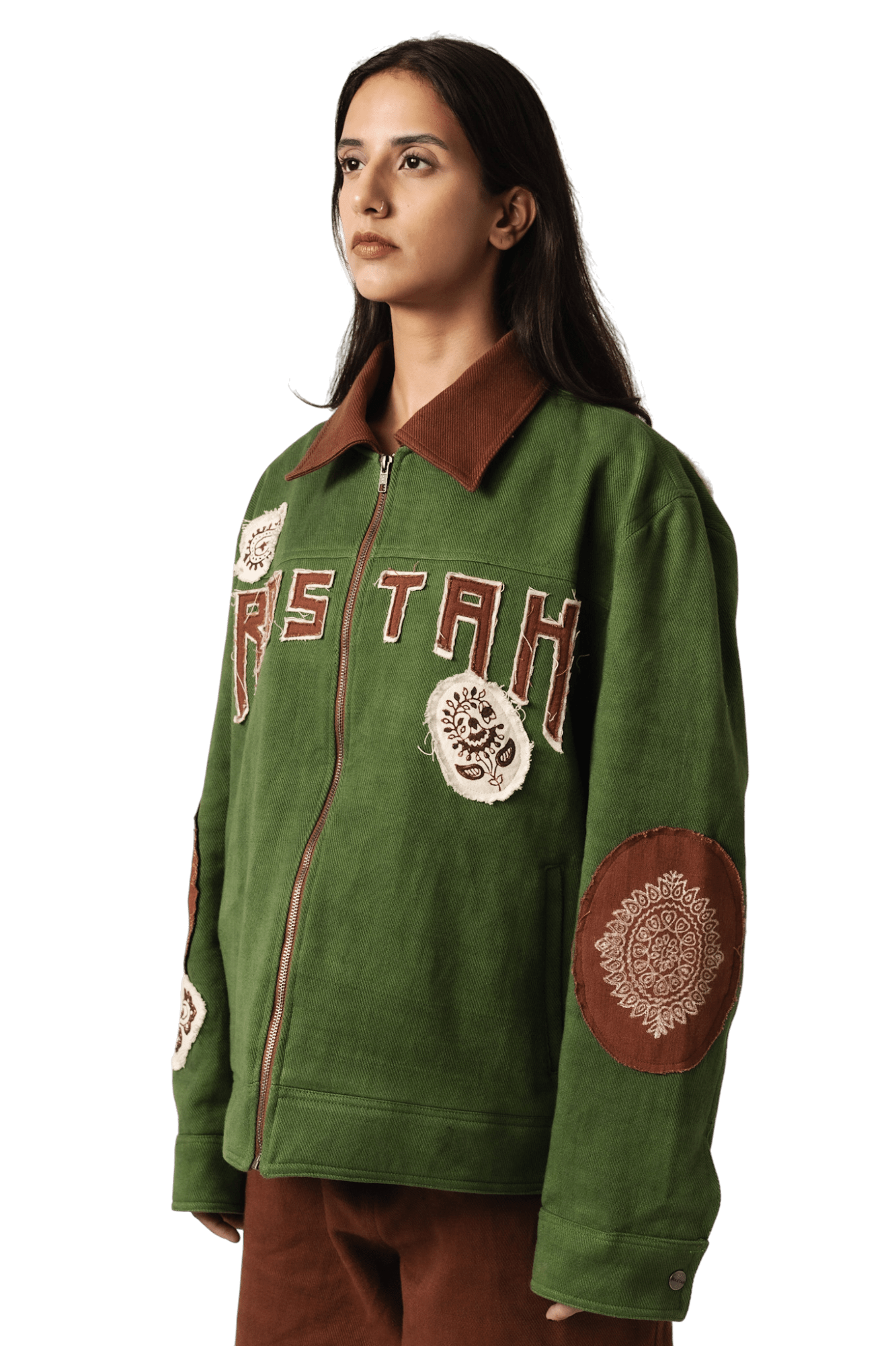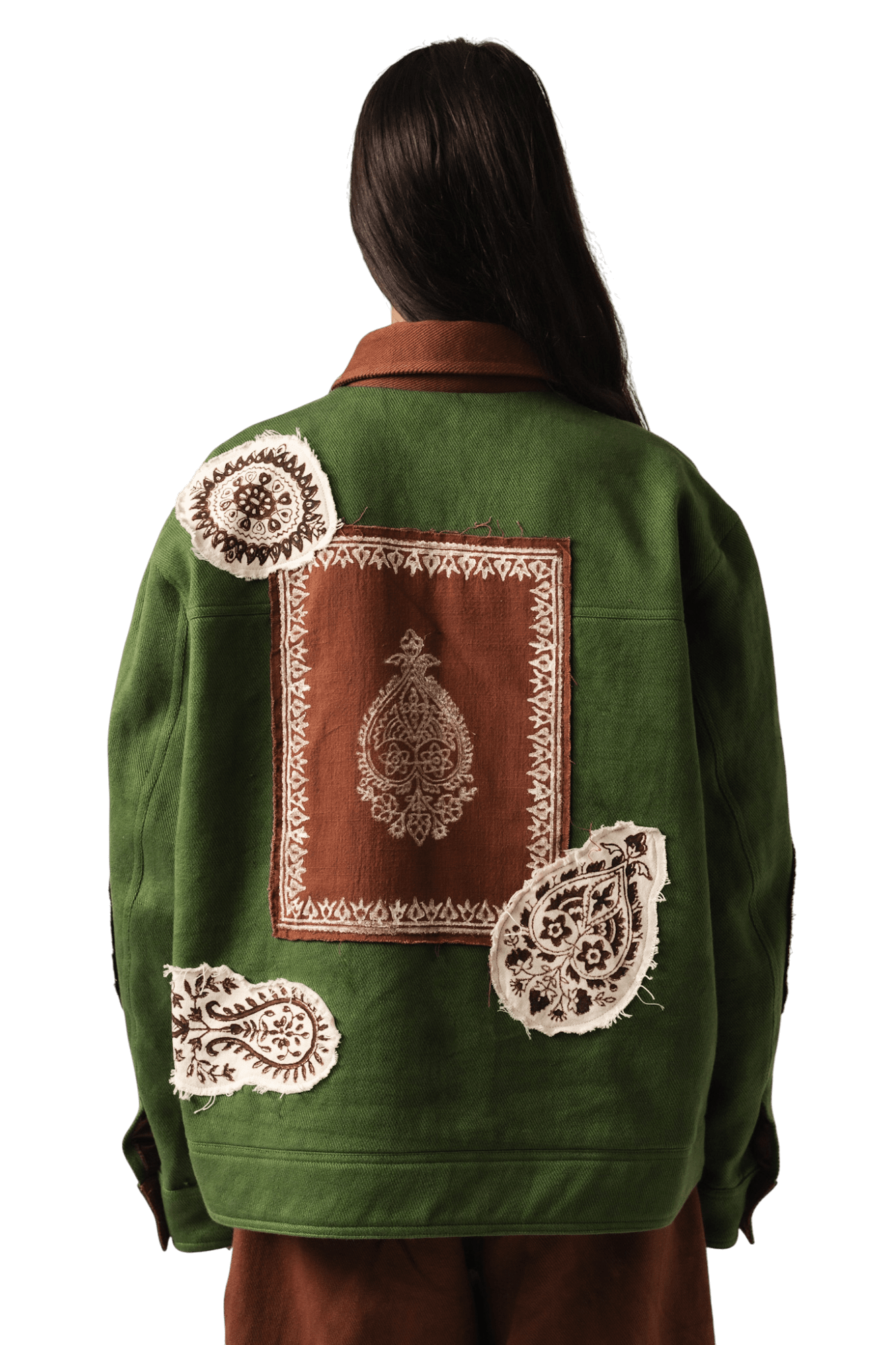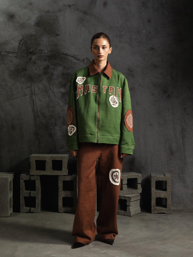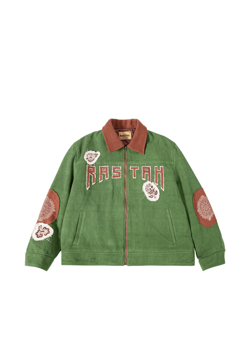 Green Block print Denim Jacket