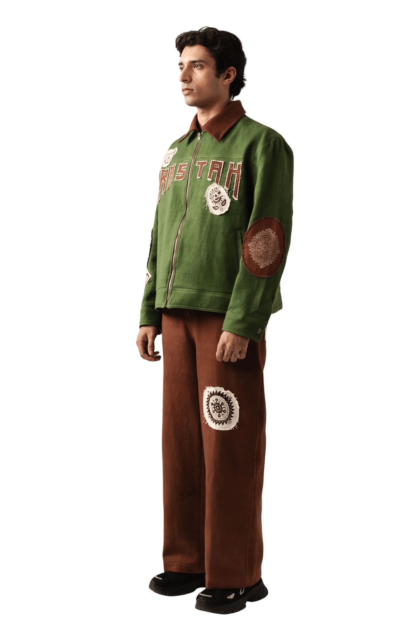 Brown Block Print Denim Pants