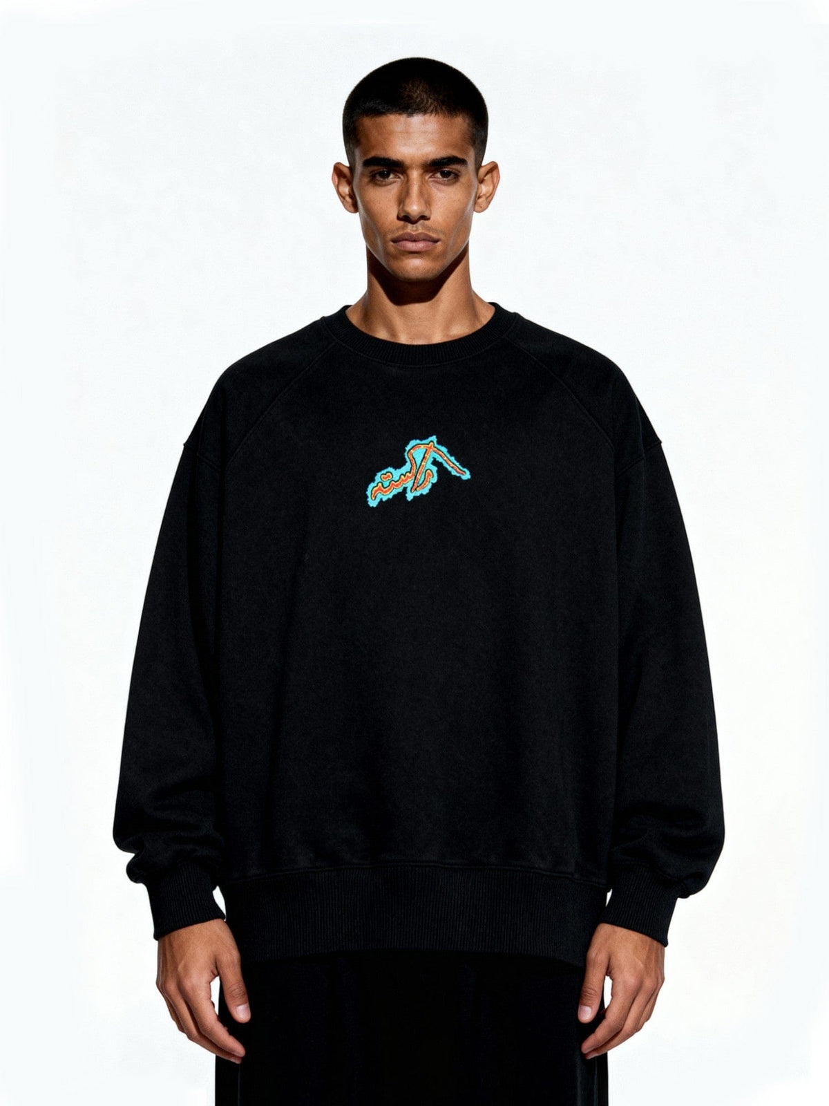 This black sweatshirt carries the quiet strength of identity — unshaken, unpretentious, and deeply rooted. Crafted from heavyweight cotton fleece, it features minimal Urdu screen print on the front and a bold, screen-printed graphic on the back reading Rastah — Made in Pakistan.
