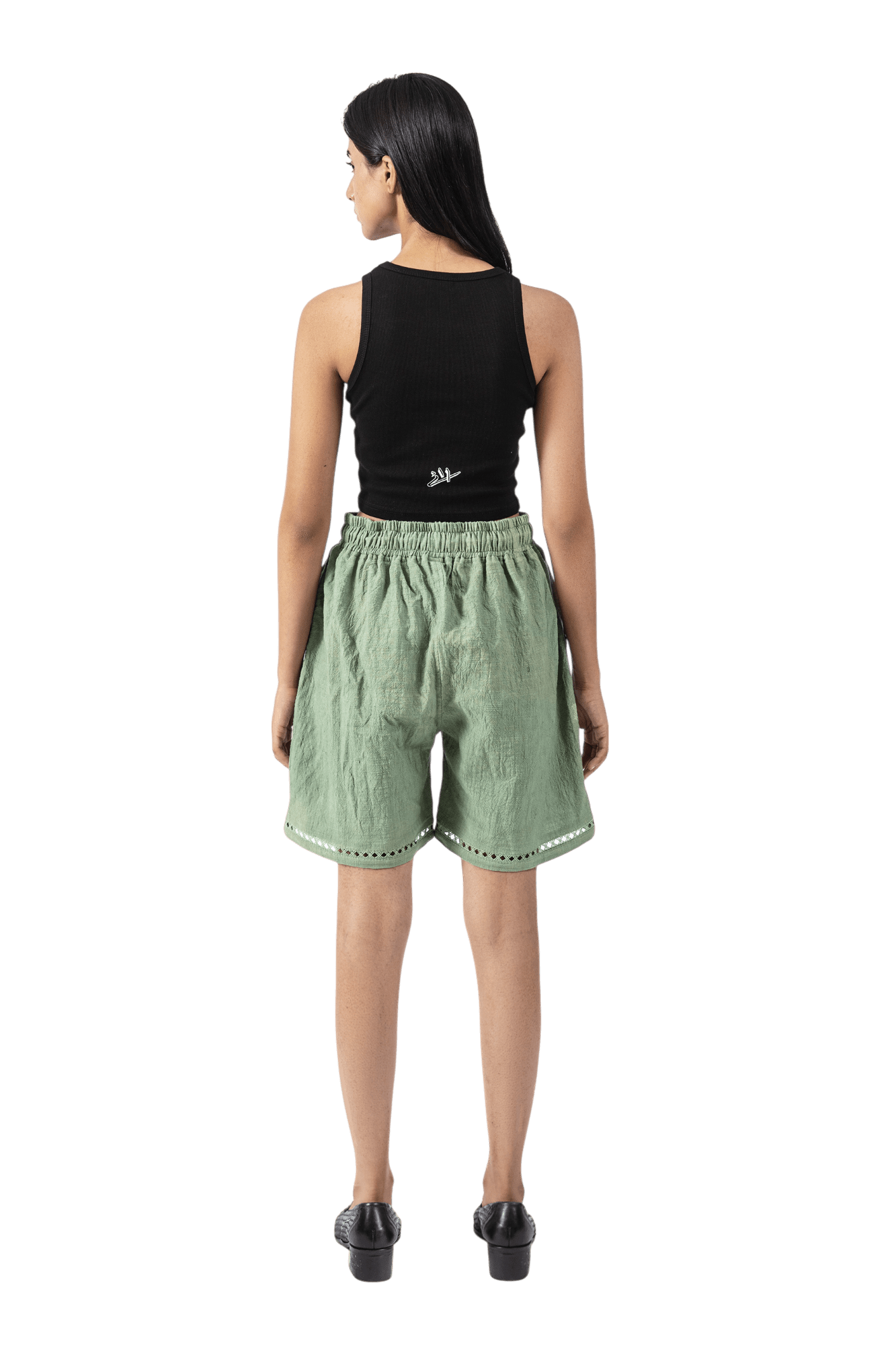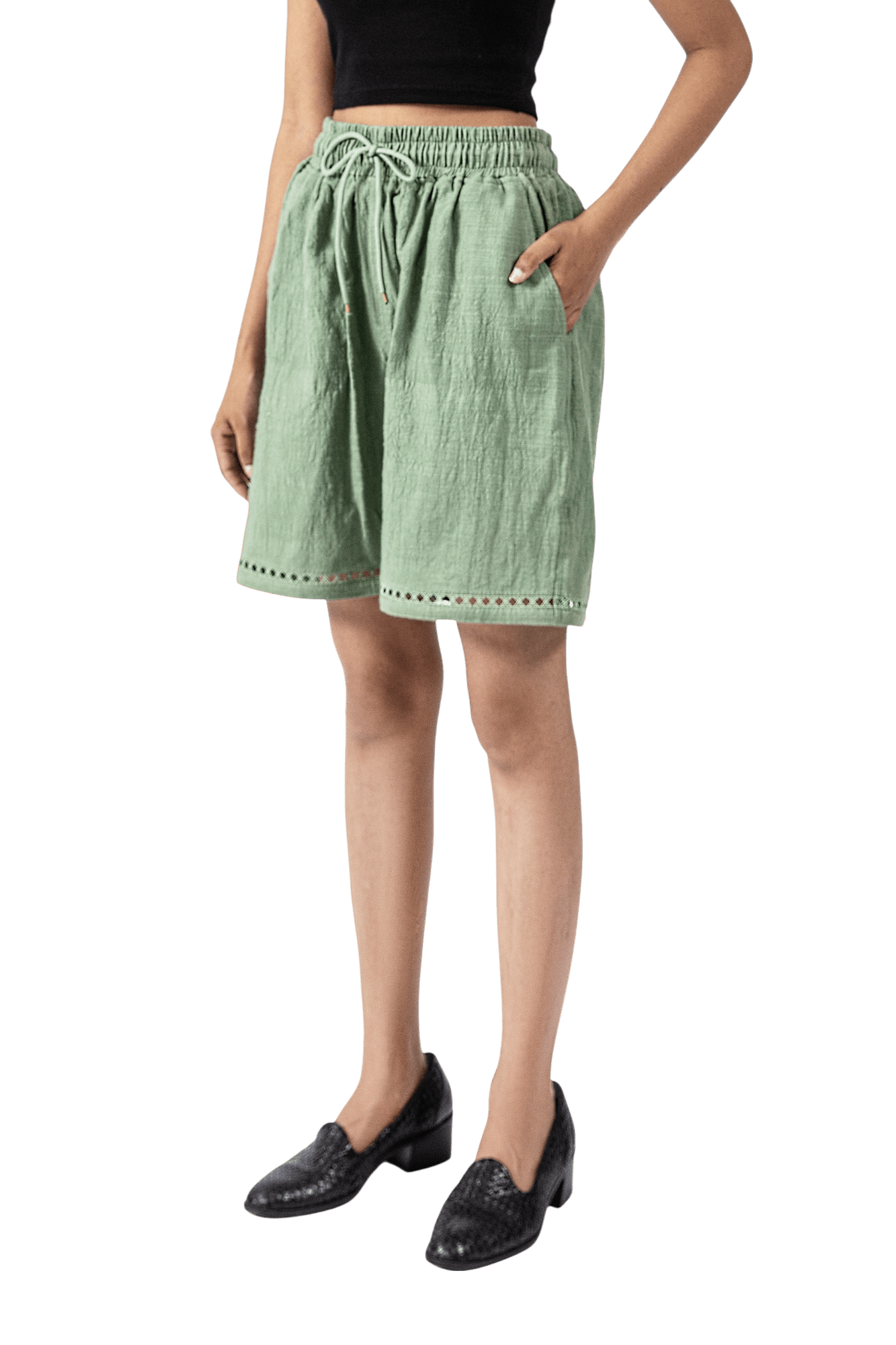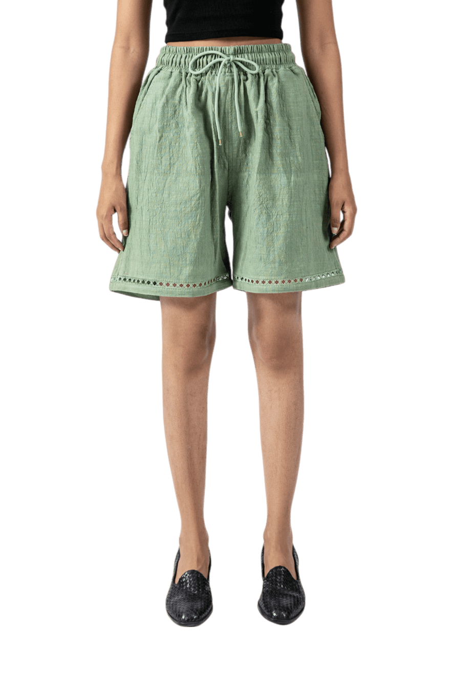 Green Khaddar Shorts