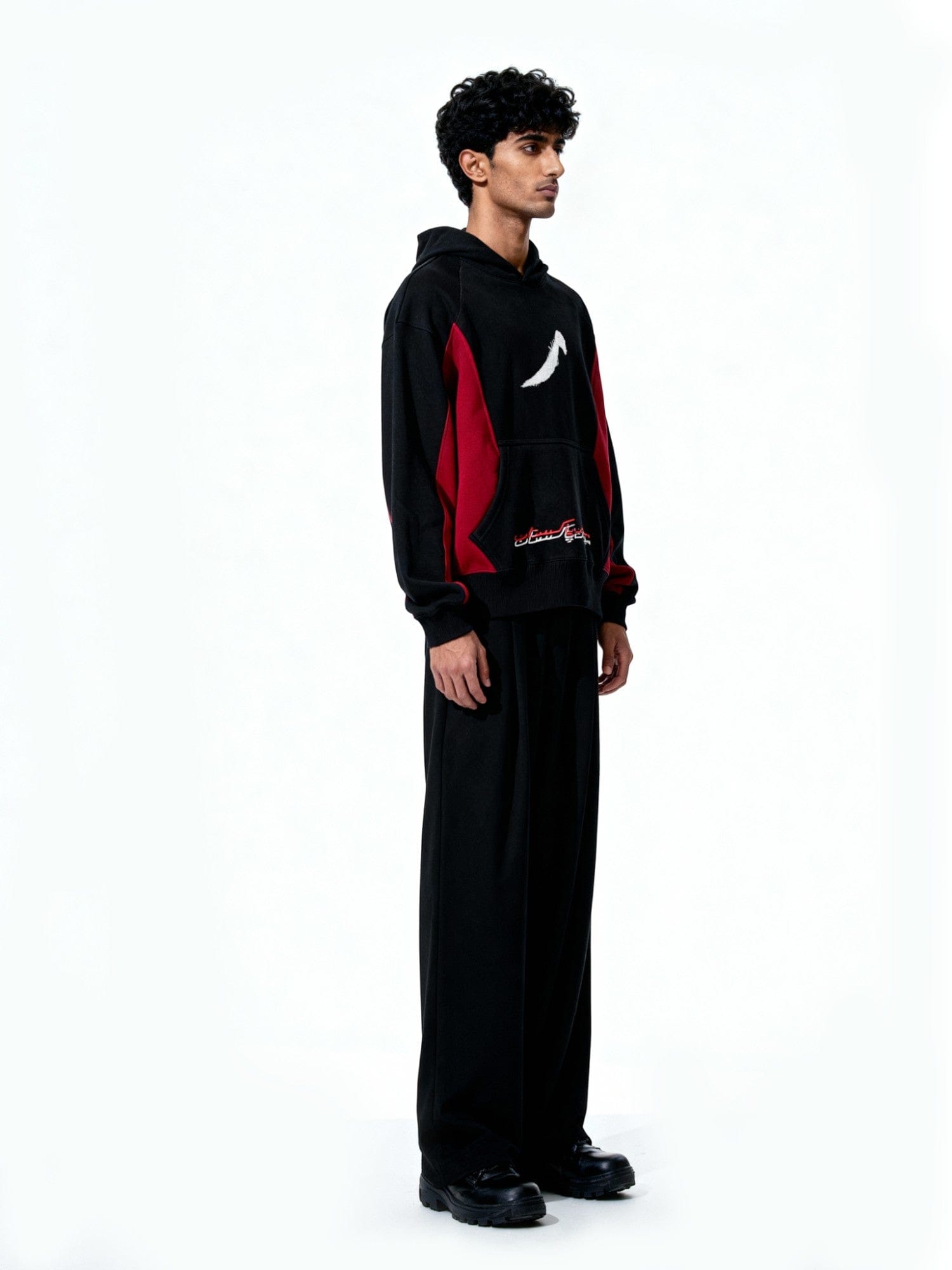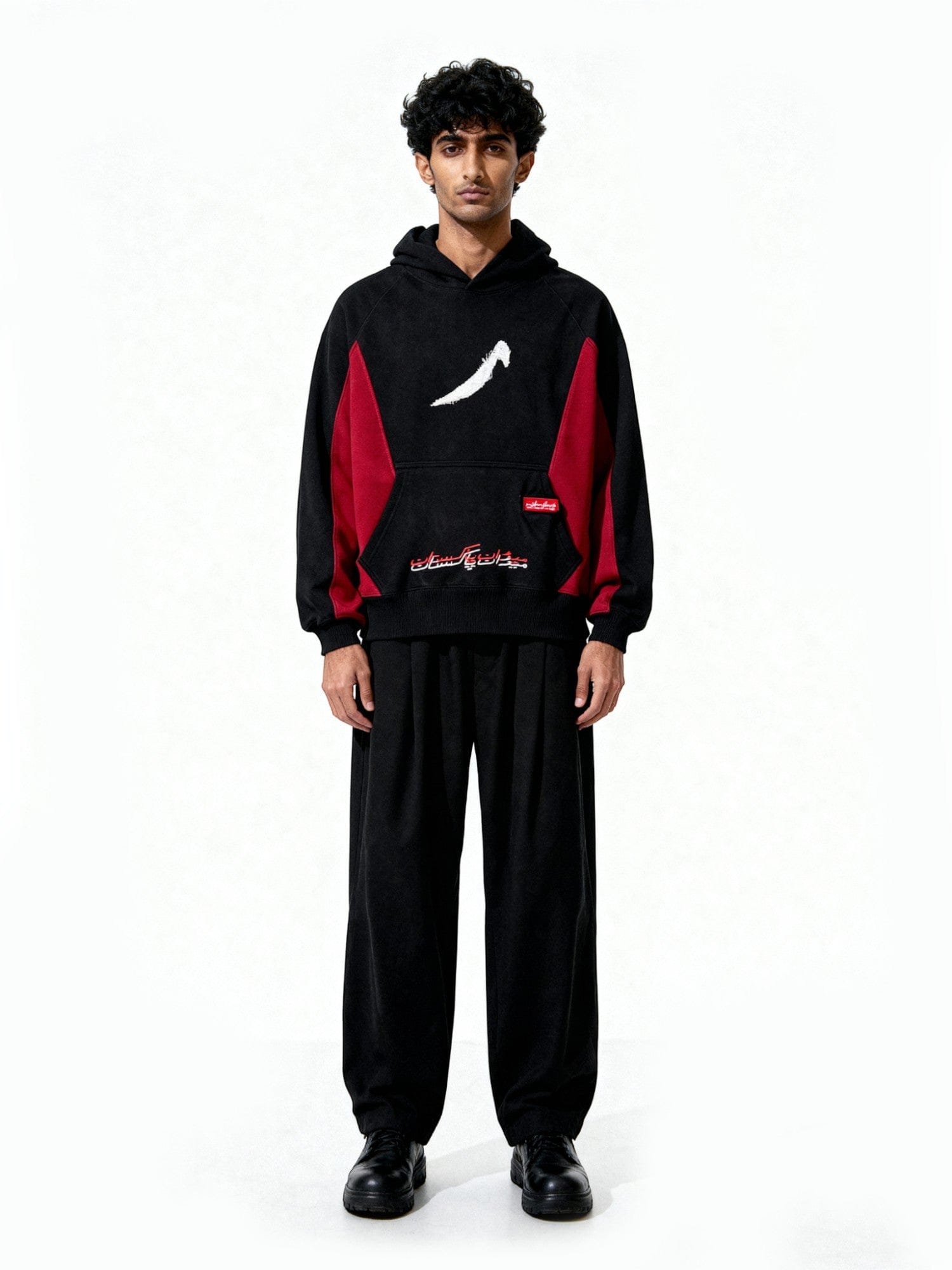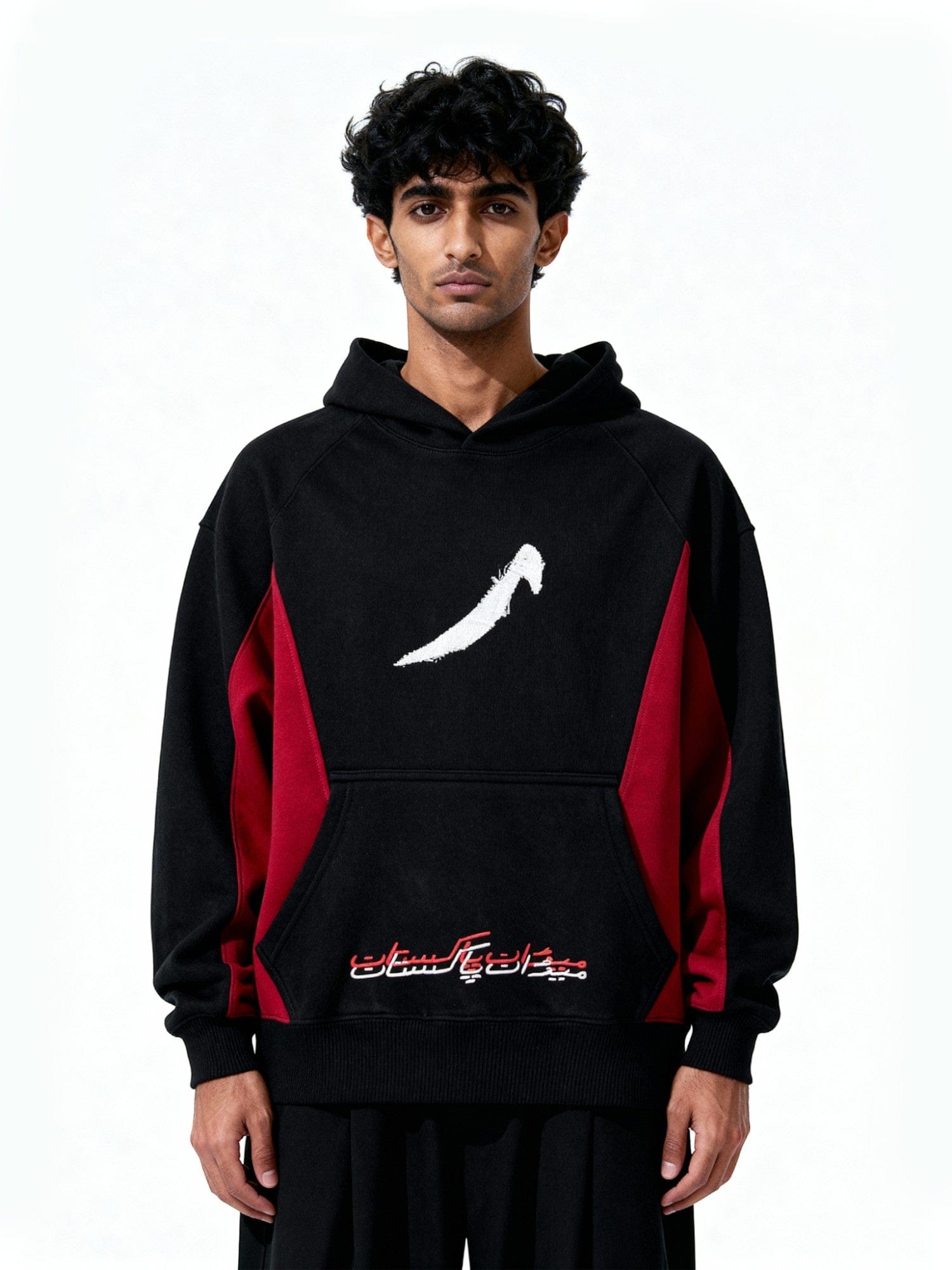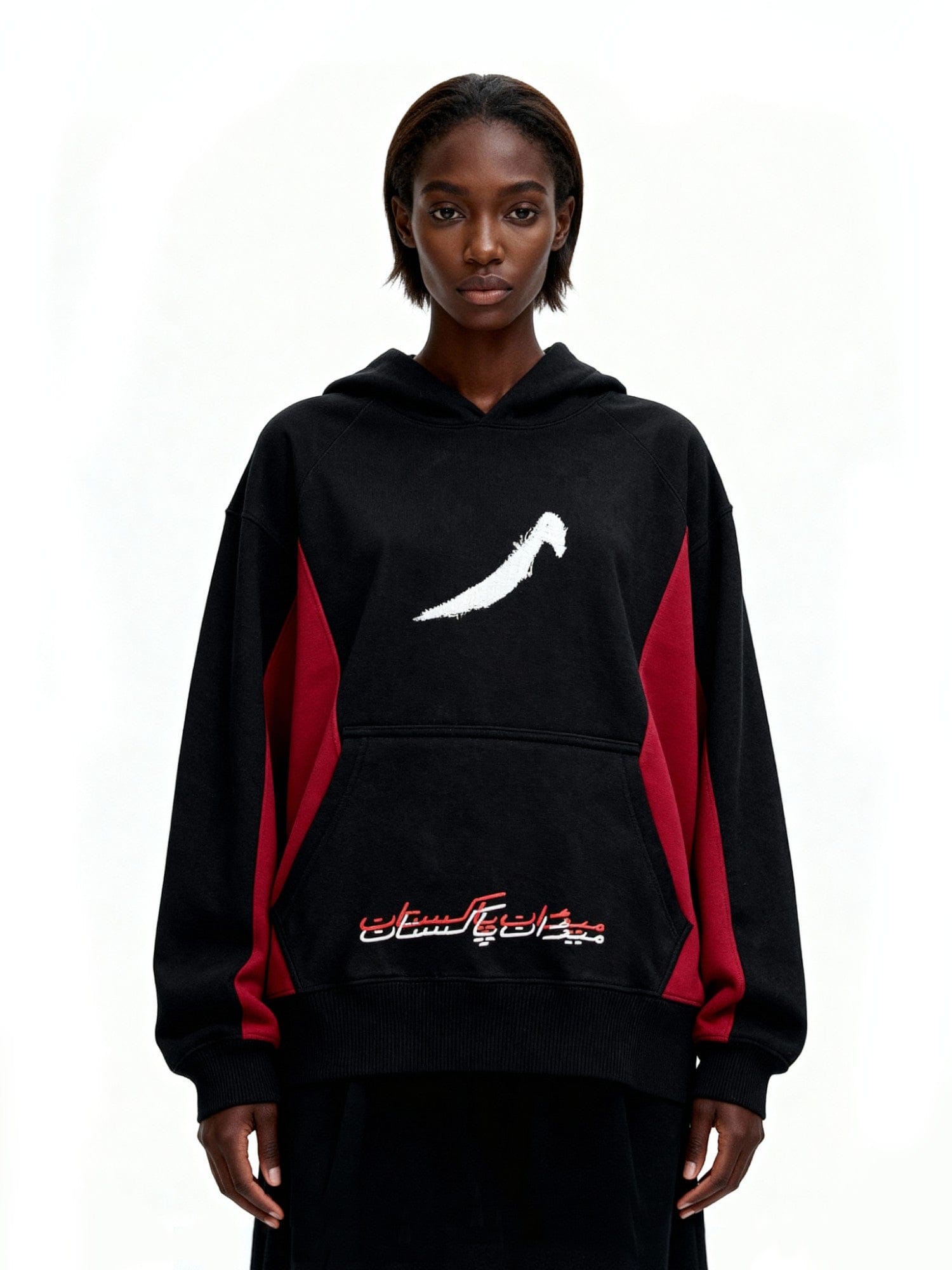 Red and Black Panelled Hoodie