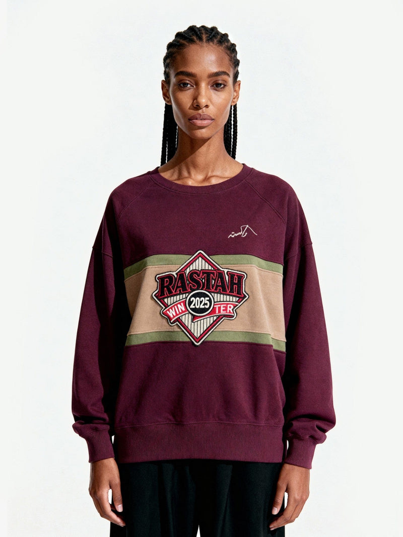 Crafted from heavyweight fleece, it features a multi-head embroidered central patch framed by contrasting color panels. The front and back screen prints add bold, graphic elements, while the relaxed silhouette ensures comfort and versatility throughout the season.
