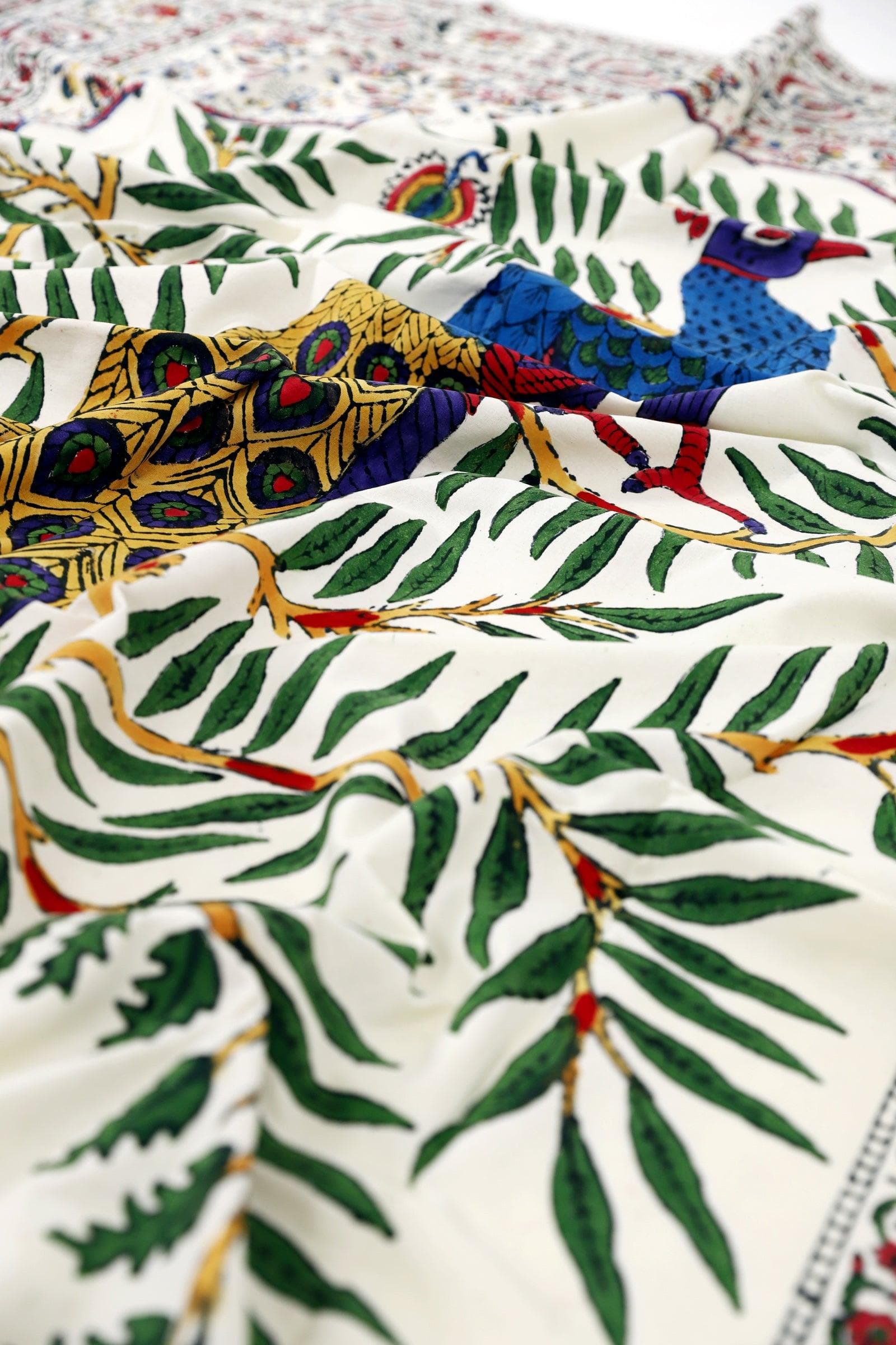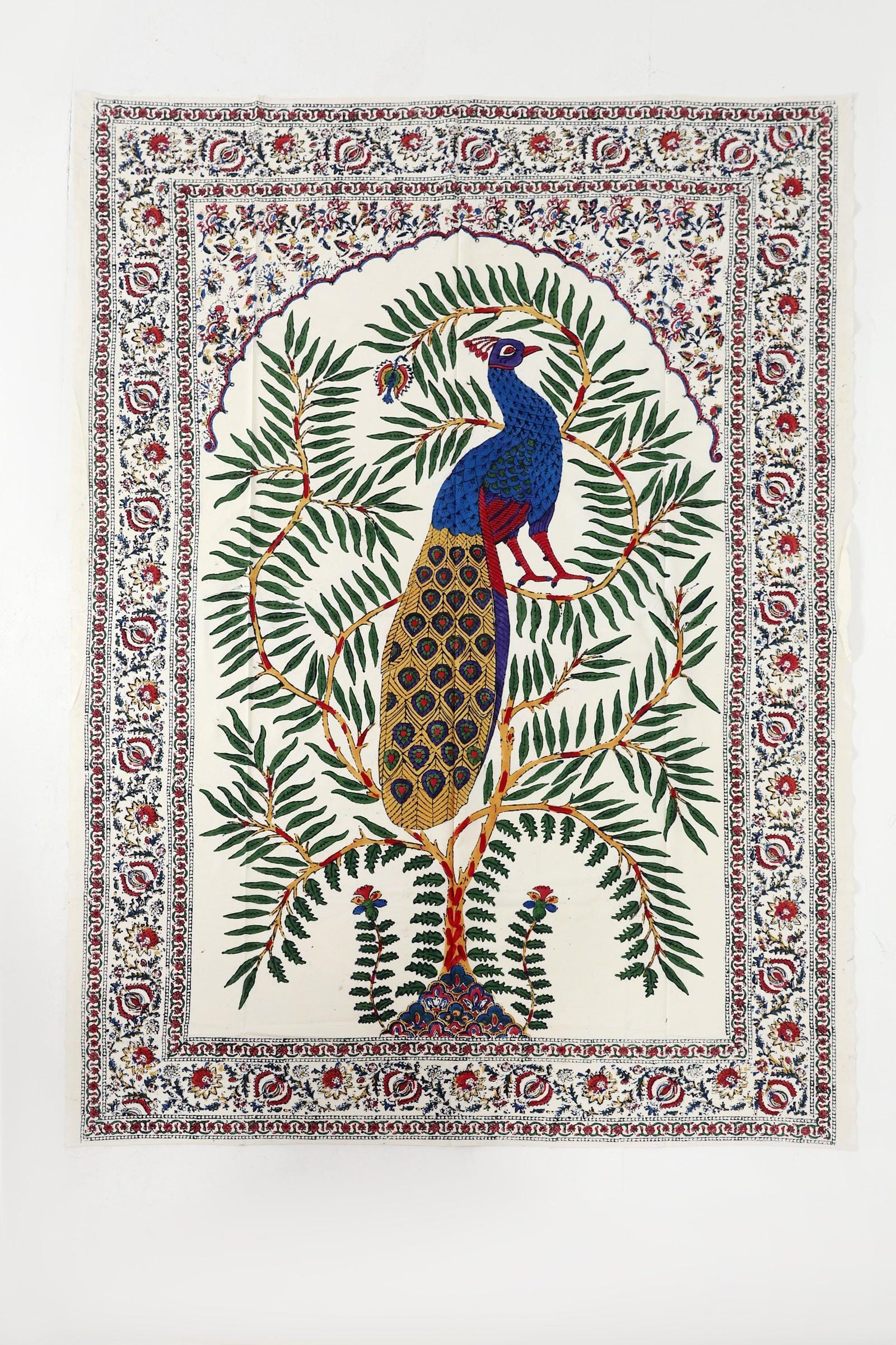 LARGE PEACOCK BLOCK PRINTED WALL TAPESTRY