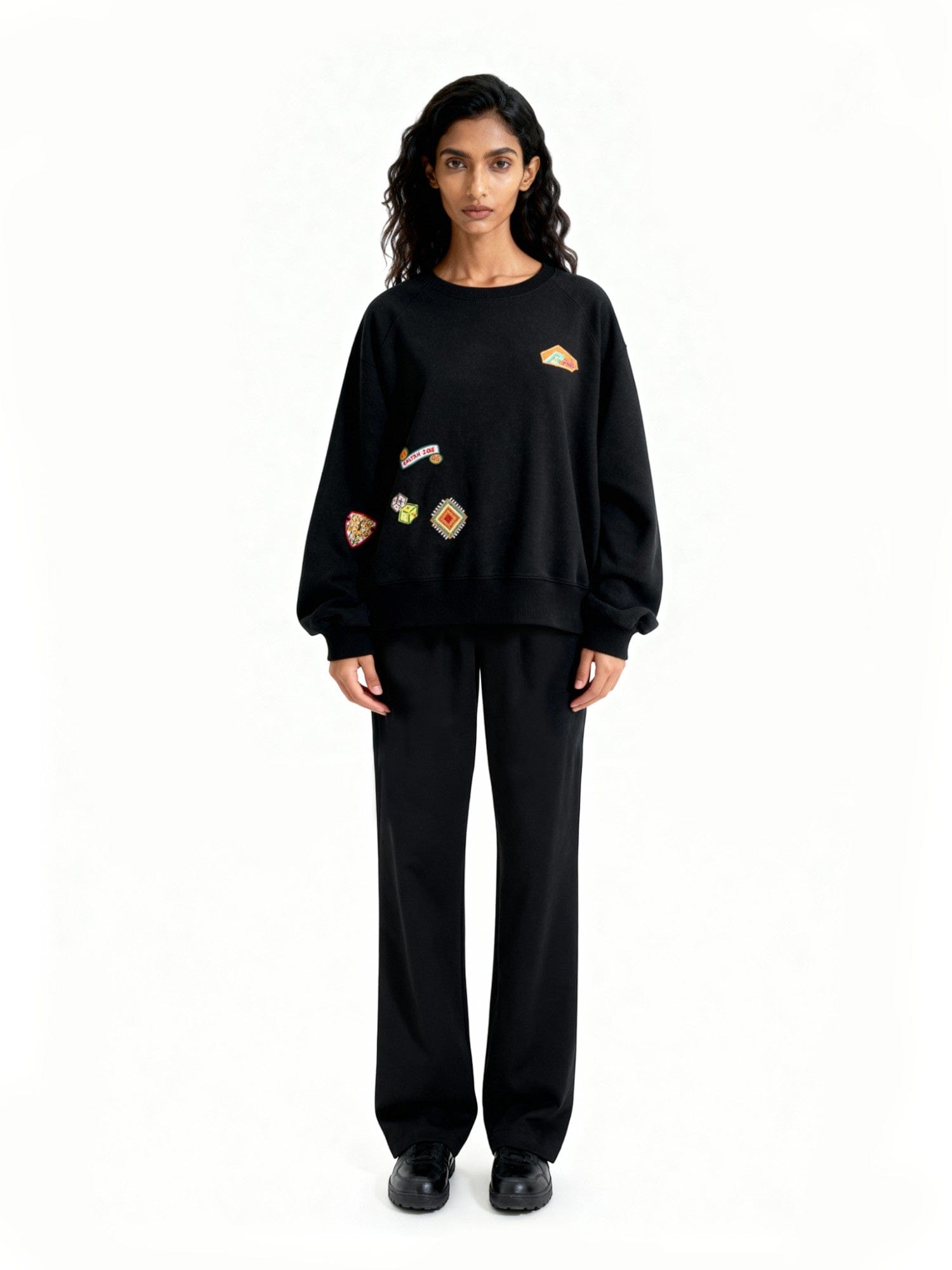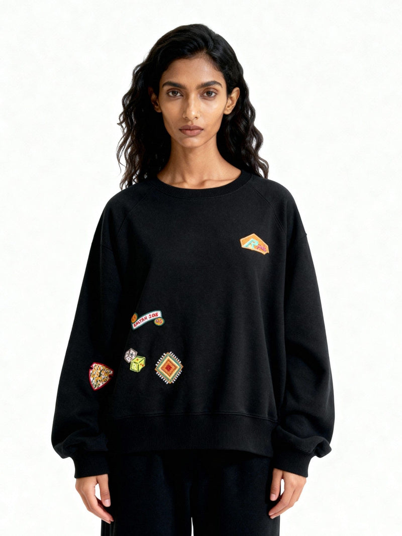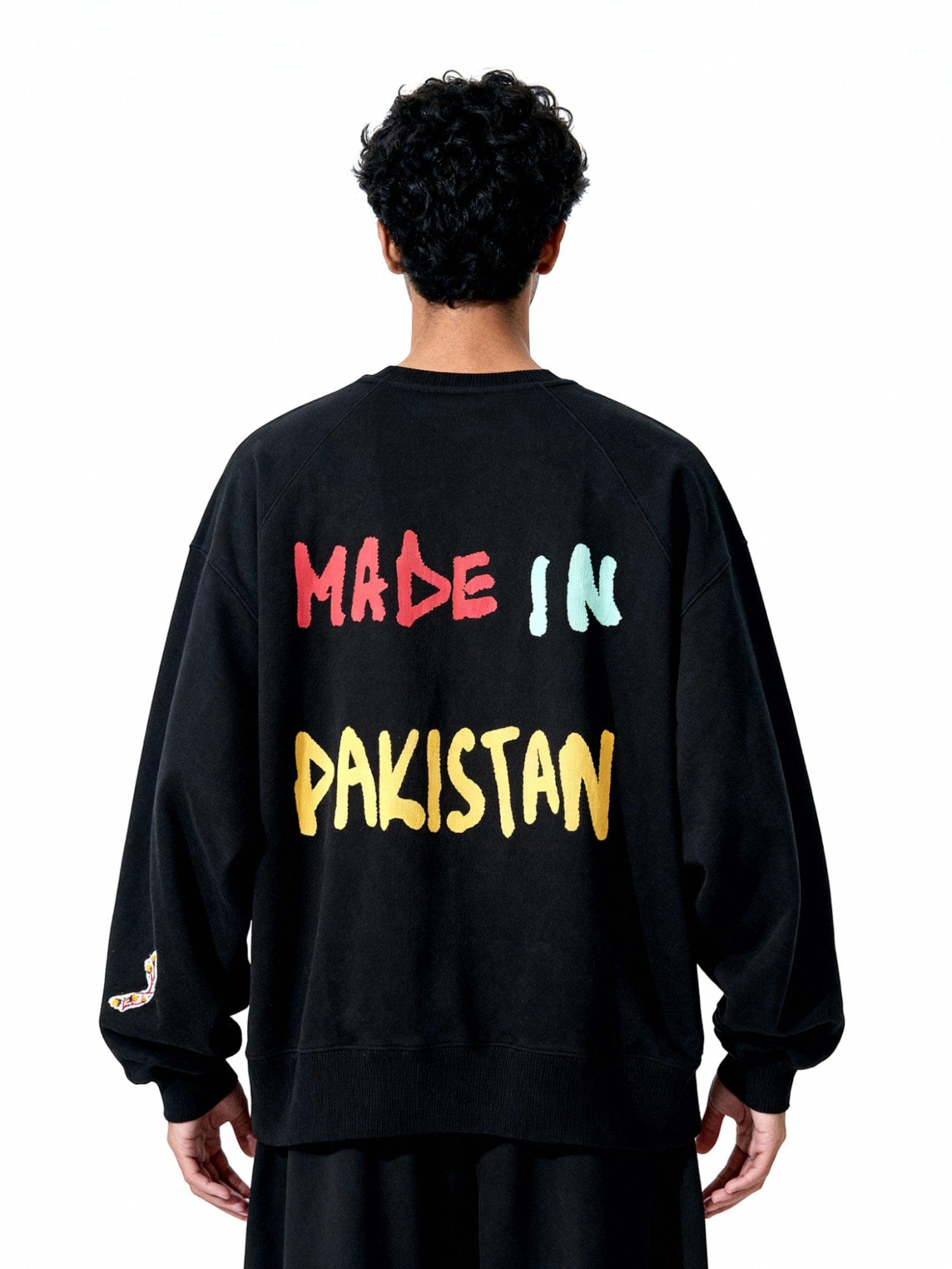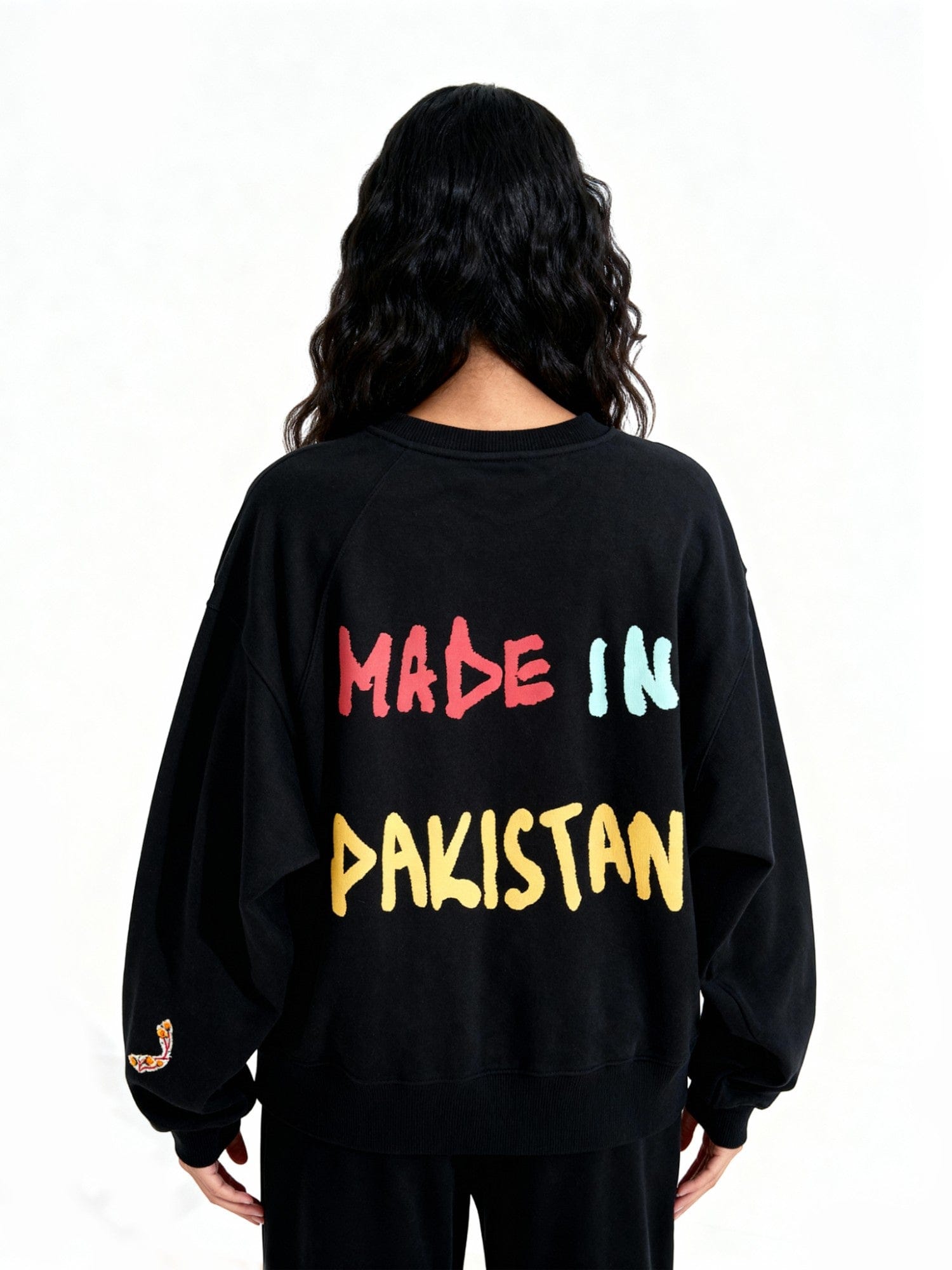 “Made in Pak” Embroidery Patchwork Sweatshirt