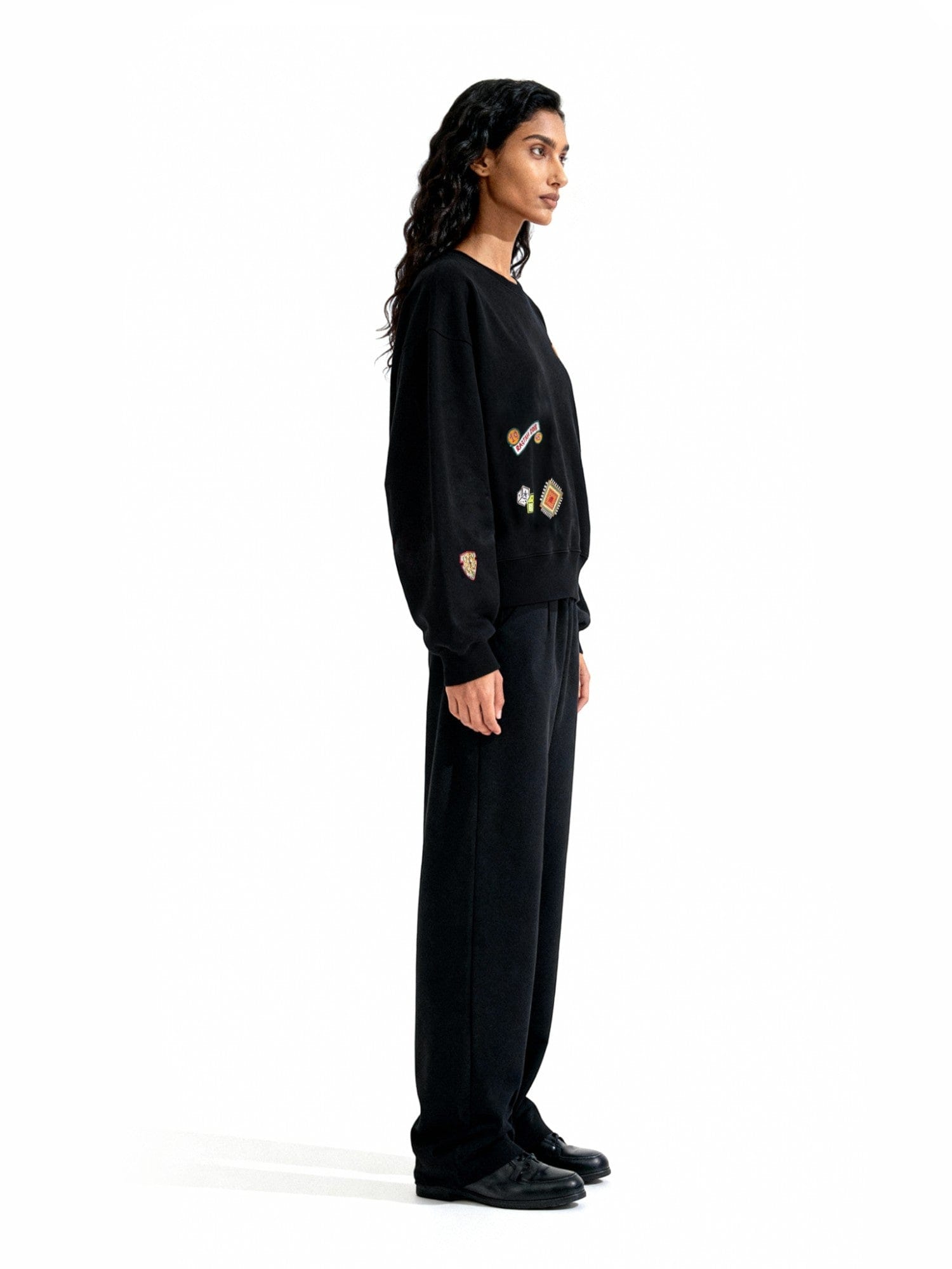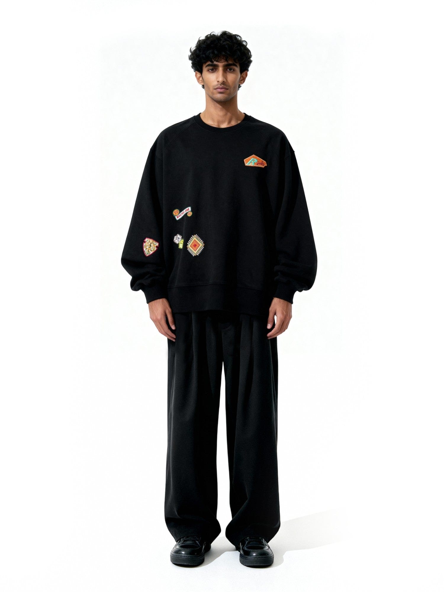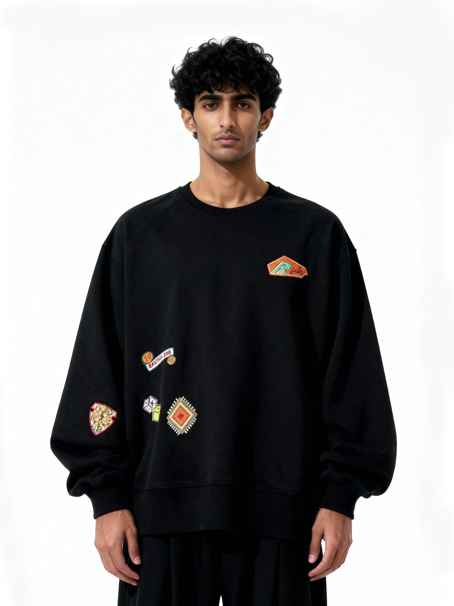 “Made in Pak” Embroidery Patchwork Sweatshirt