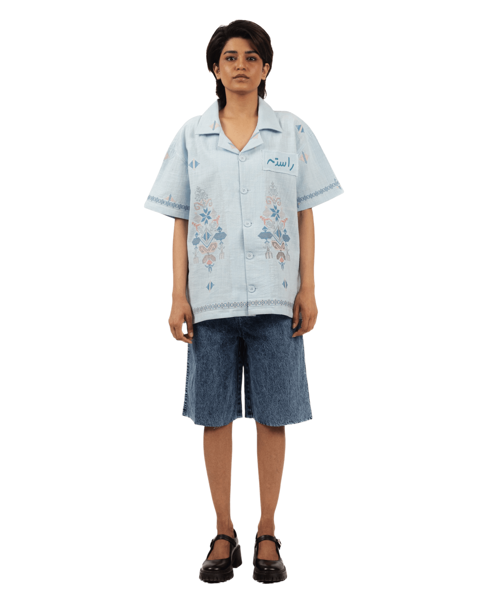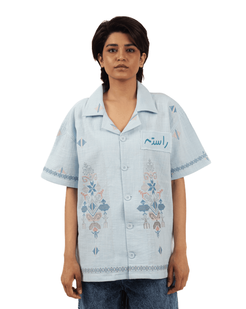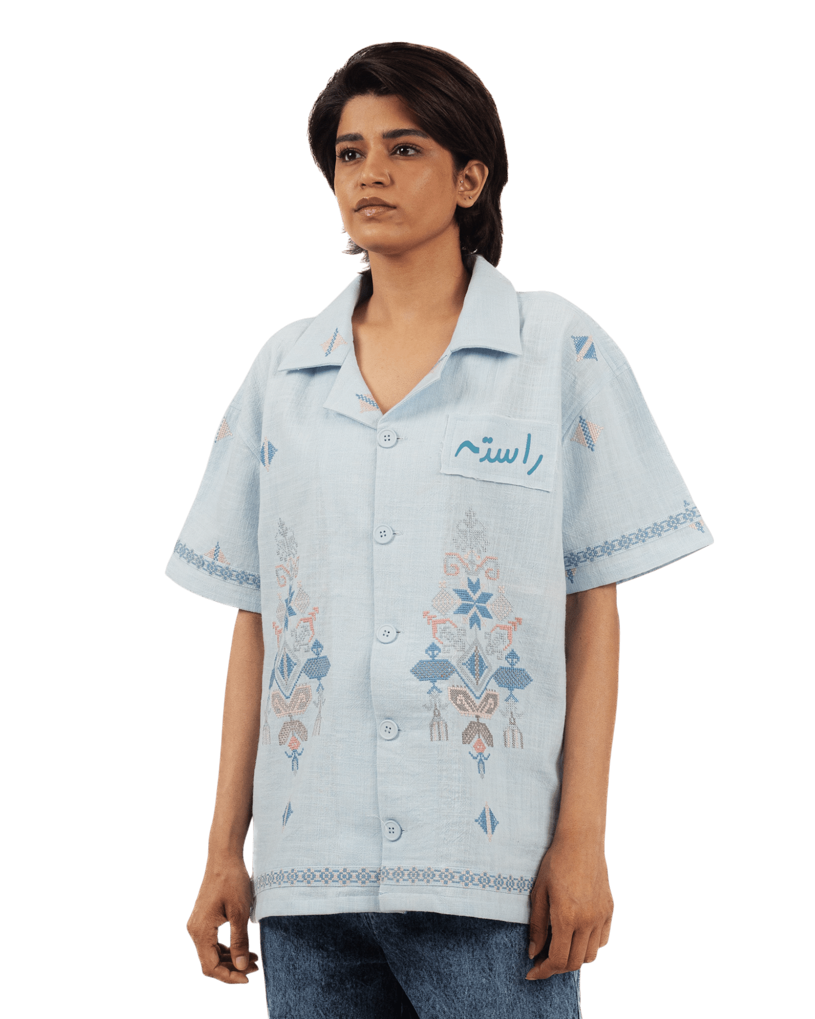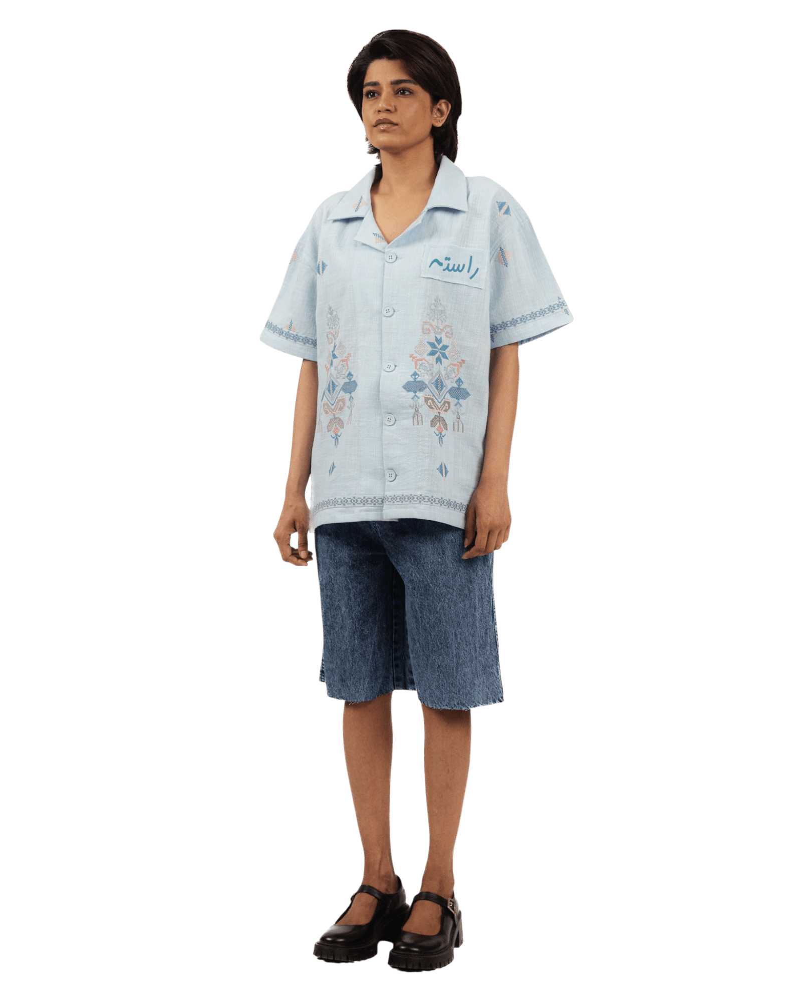 "SUMMER CLOUD" EMBROIDERED BUTTON DOWN